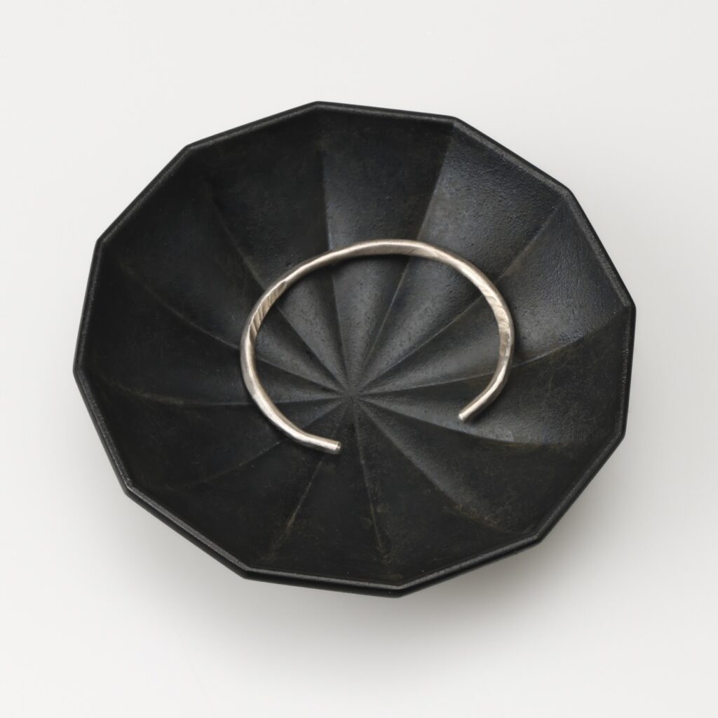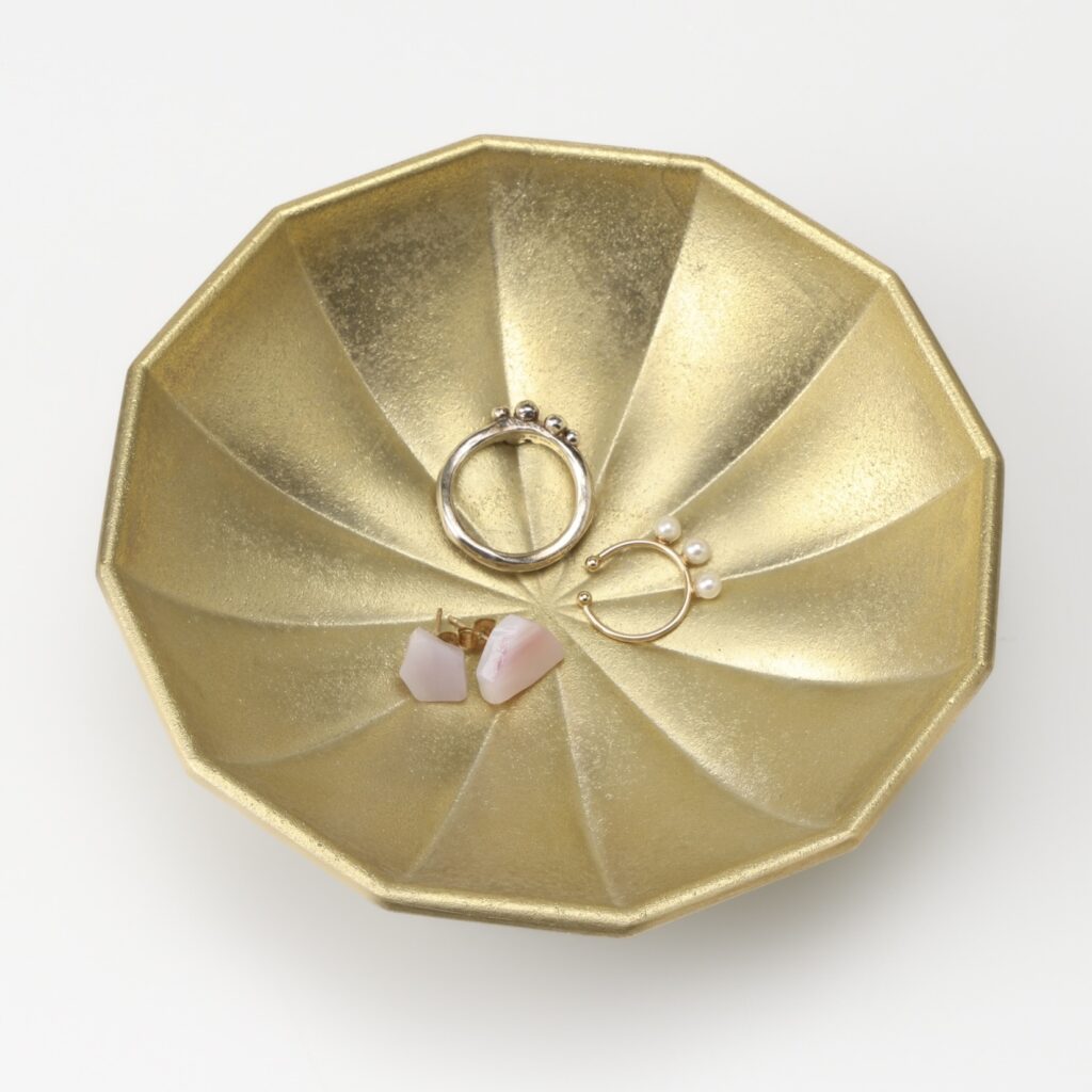 内側は12角形の放射状に成形され、その三角形で分かれた形状がふっくらと盛り上がることで、アクセサリーが持ち上がり、指先で取りやすくなっています。