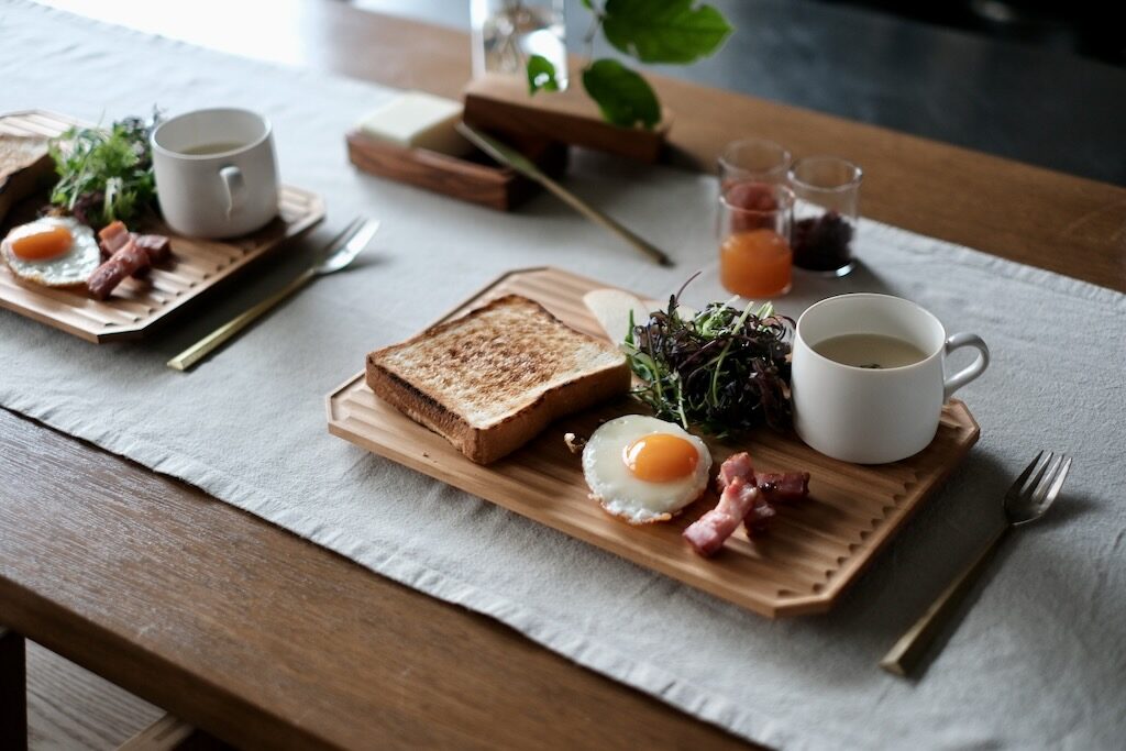 ブランチボード:パンやパンケーキ、卵料理にサラダなどを盛り付けてワンプレートとして使えます。休日の少しゆっくり過ごしたい朝の時間はもちろん、さっと取り出して毎日の朝食にも活躍してくれます。おにぎりとお味噌汁をのせても似合います。
