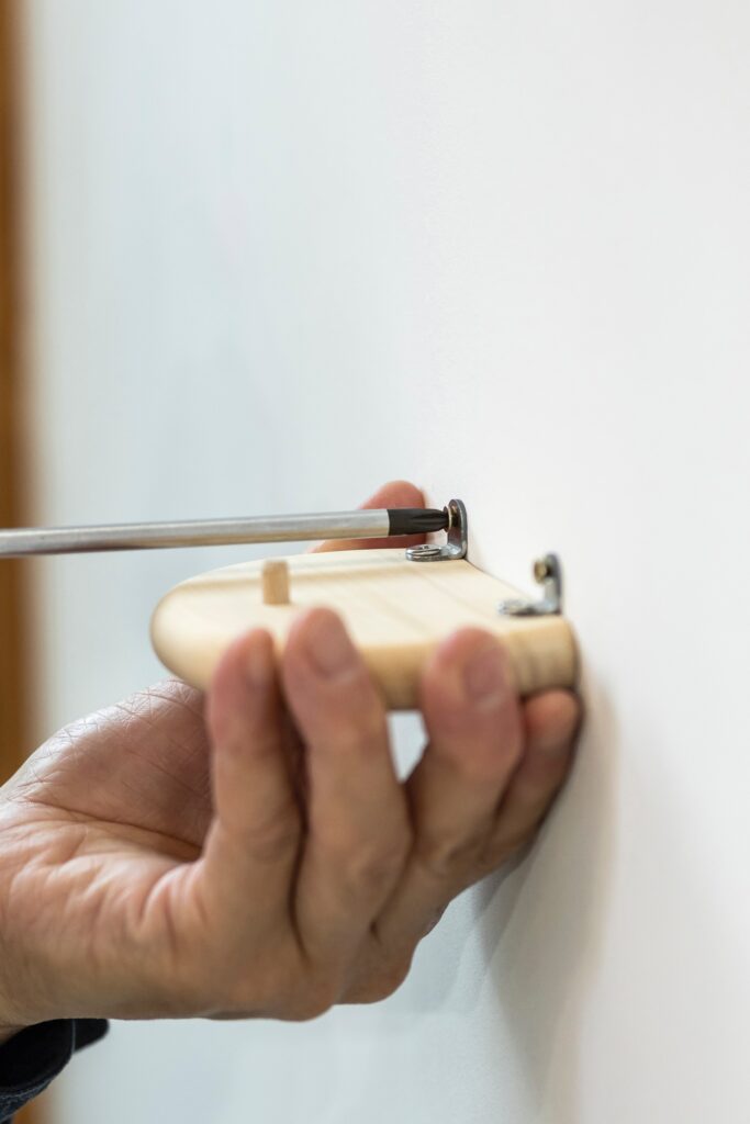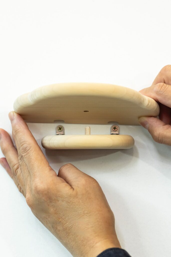 雲をモチーフにした2枚の板を、壁に留めるだけのシンプルな構造。 付属のビスはもちろん、市販のピンでも手軽に設置できるため、場所を選ばずどなたでもすぐにお使いいただけます。